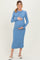 Blue Ribbed Knit Fitted Maternity Midi Sweater Dress