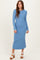 Blue Ribbed Knit Fitted Midi Sweater Dress