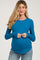 A solid ribbed long sleeve maternity top with exposed seam details and rounded hem.