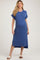 Blue Ribbed Short Sleeve Maternity Midi Dress