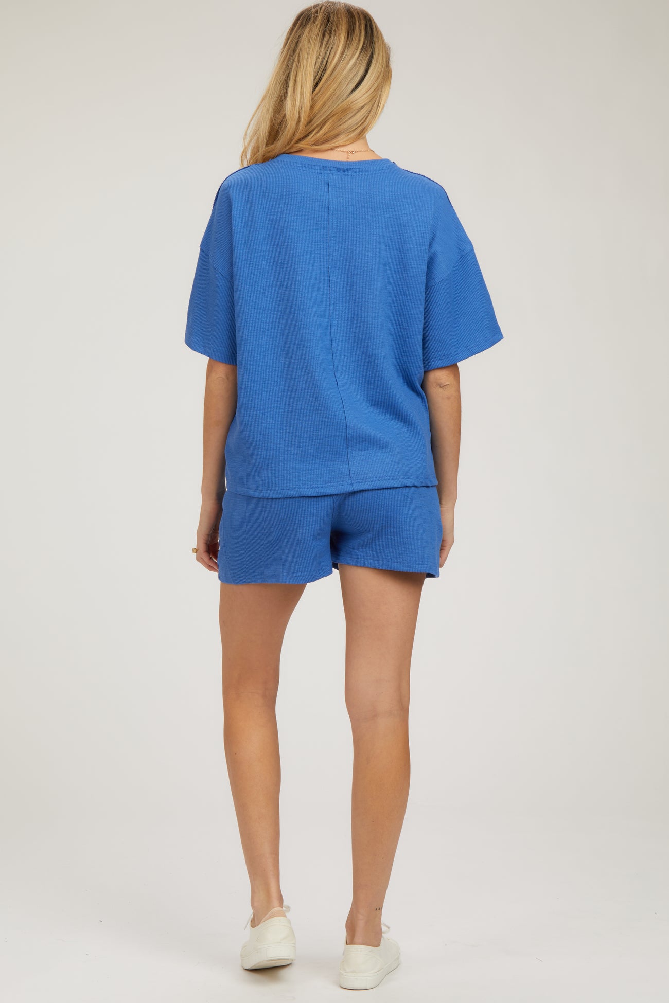 Blue Ribbed Short Sleeve Maternity Short Set