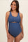 Blue Scalloped Cutout Ruched Maternity One Piece Swimsuit
