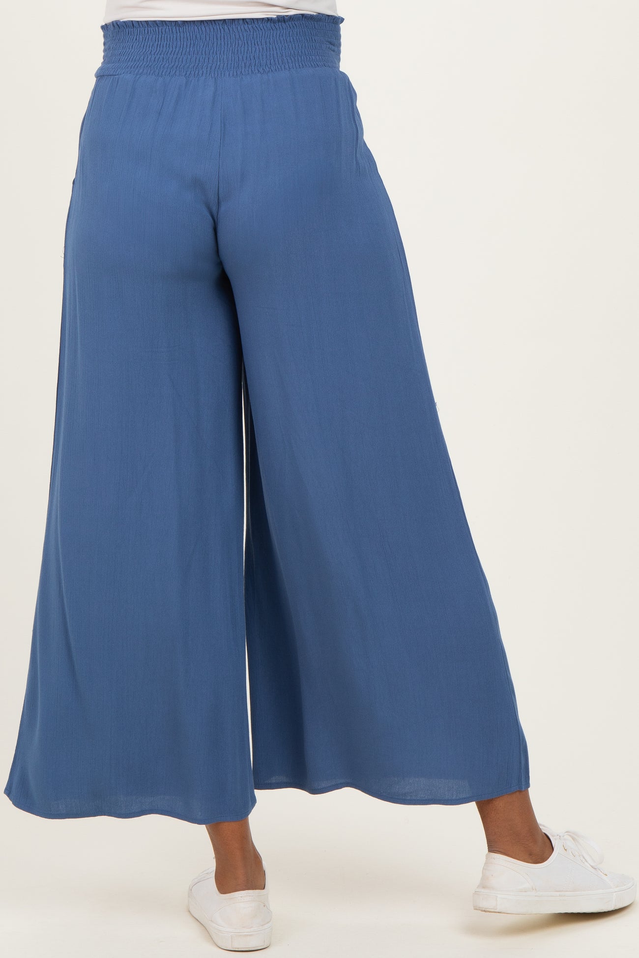 Blue Smocked Waist Ankle Wide Leg Maternity Pants
