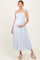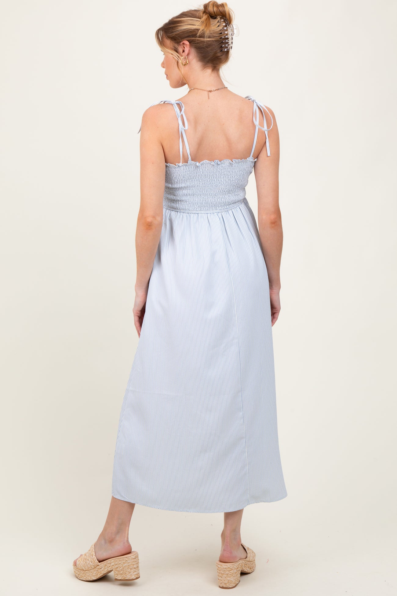 Blue Striped Shoulder Tie Smocked Maternity Maxi Dress