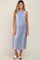 A striped knit maternity dress featuring a rounded neckline and double lining.