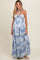 Blue Sweetheart Neck Halter Cut Out Back Maternity Maxi Dress