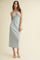 Blue Textured Plaid Drawstring Neck Midi Dress