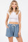 Details A vintage wash pair of drawstring shorts with two side pockets and unfinished hem detail. Content + Care