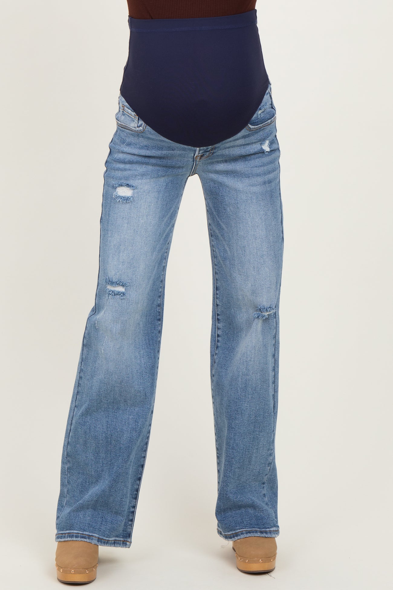Blue Vintage Wash Wide Leg Maternity Jeans