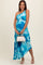 Blue Watercolor Satin Pleated One-Shoulder Asymmetrical Maternity Midi Dress