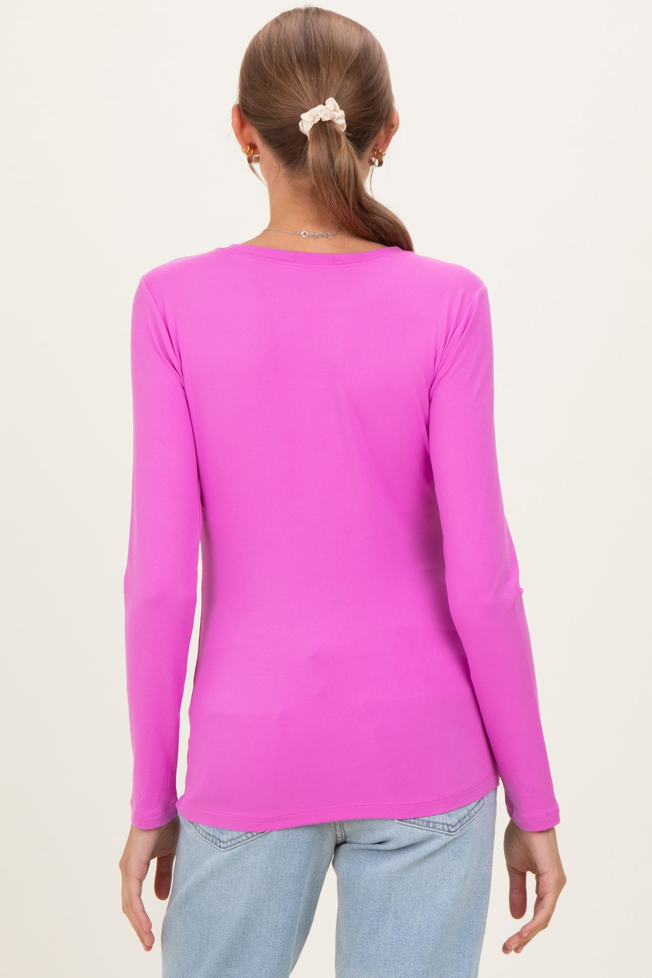 Bright Mauve Basic Long Sleeve Maternity Top