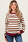 Stay cozy and stylish throughout your pregnancy with our Brown Contrast Stripe Oversized Maternity Sweatshirt. Featuring a relaxed oversized fit, this sweatshirt is designed to comfortably accommodate your growing bump. The chic brown and cream horizontal stripes add a timeless look, while contrasting burgundy ribbed cuffs, hem, and neckline provide a trendy pop of color. Crafted from soft, breathable fabric, it’s perfect for casual outings or cozy days at home. Pair it with your favorite maternity jeans or leggings for effortless everyday comfort and style. Easy to care for and made to keep up with your active maternity lifestyle.