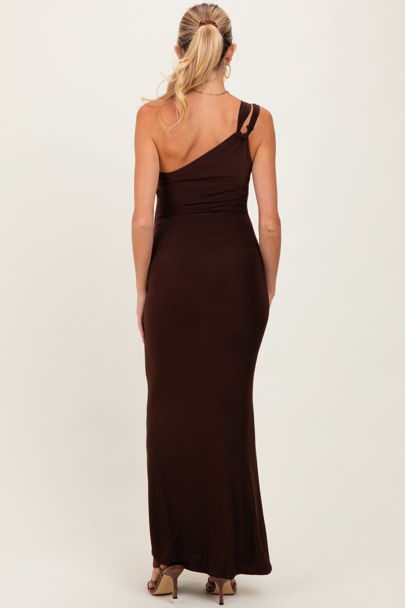 Brown Double Strap One Shoulder Maternity Maxi Dress