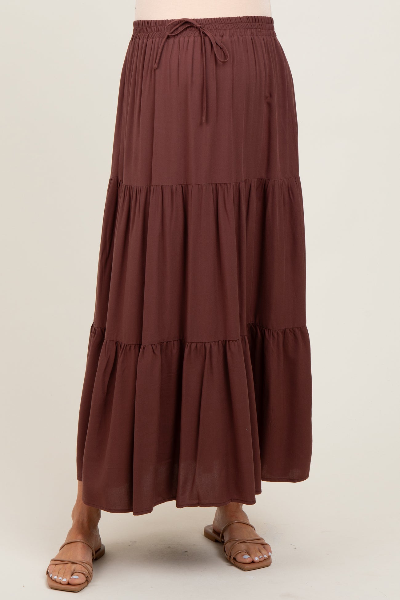 Brown Drawstring Tiered Maternity Maxi Skirt