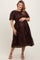 Brown Floral Embroidered Mesh Overlay Smocked Maternity Plus Midi Dress