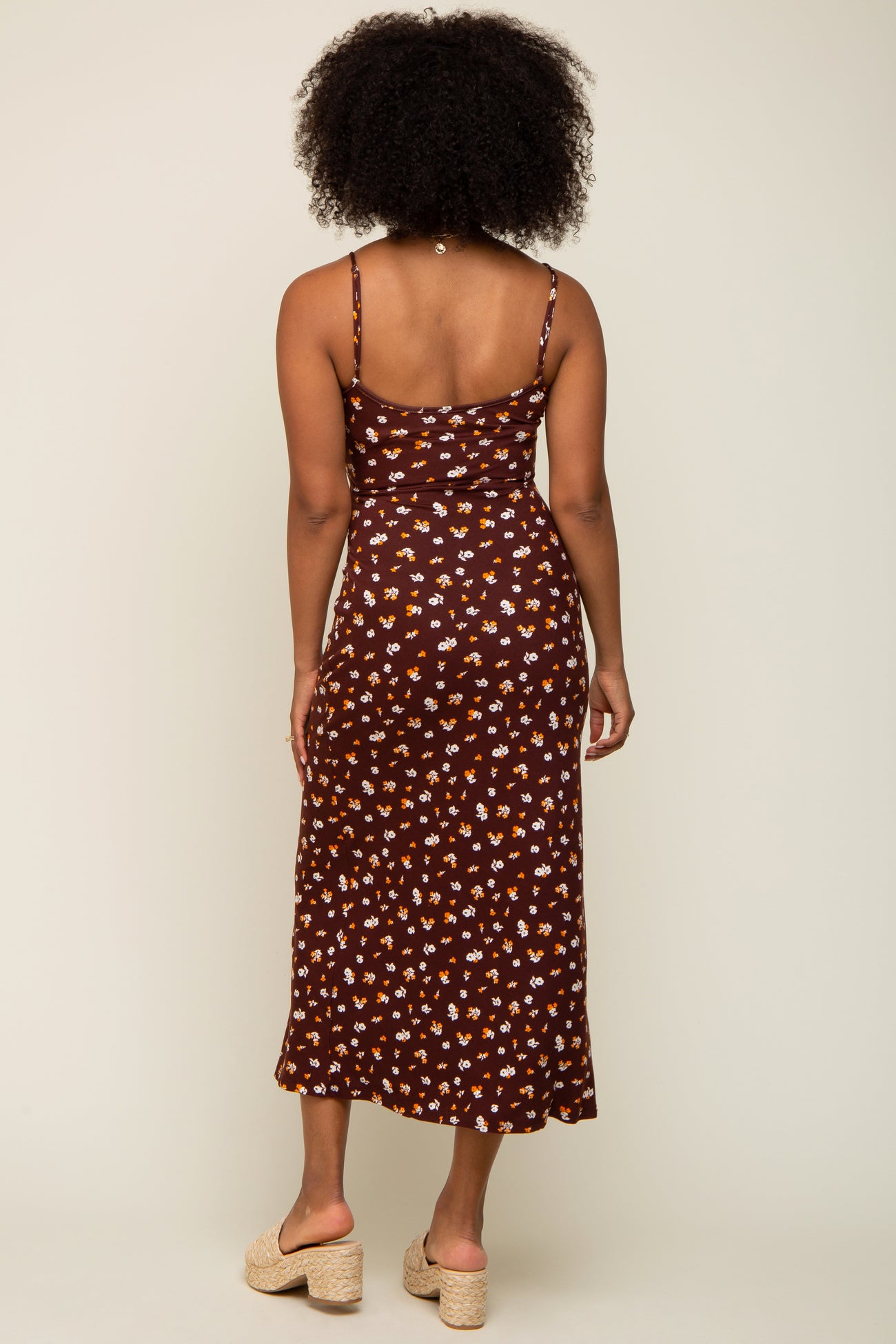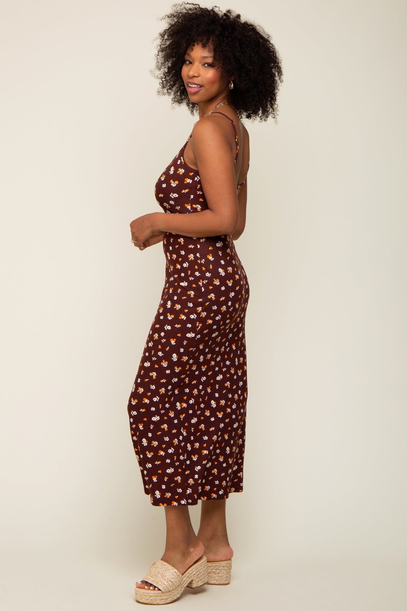 Details A sleeveless floral midi dress featuring adjustable cami straps and a rounded neckline. Content + Care