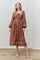 Brown Floral Stripe Button Down Long Sleeve Midi Dress
