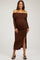 Brown Foldover Off Shoulder Front Slit Maternity Midi Dress