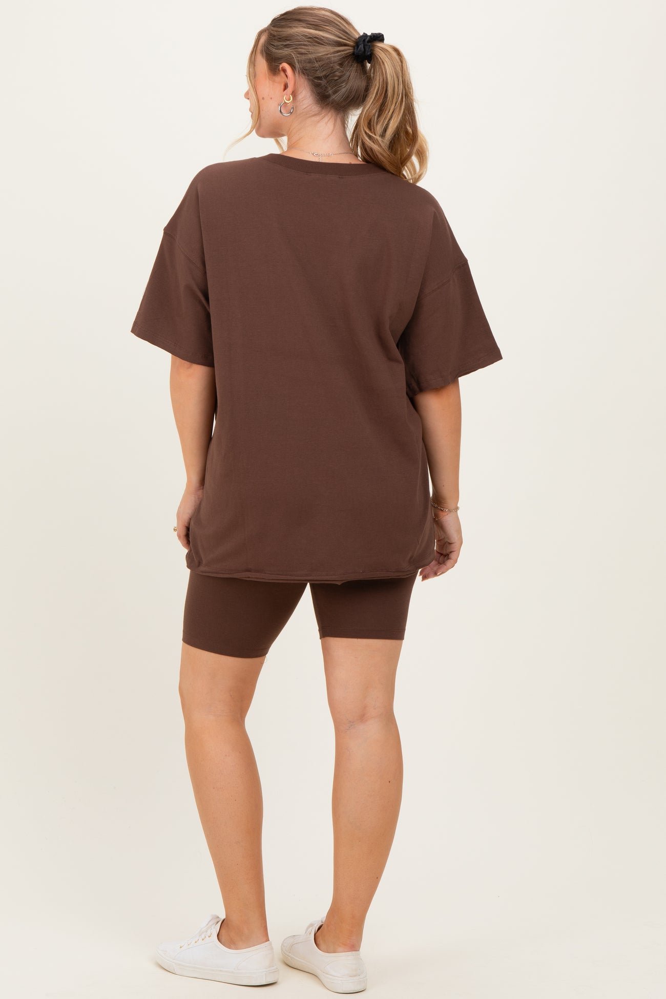 Experience ultimate comfort and style with this oversized V-neck maternity set designed specifically for moms-to-be. The soft, breathable fabric gently adapts to your changing shape, ensuring ease and flexibility throughout your pregnancy. Featuring a loose-fitting V-neck top with dropped shoulders for a relaxed and flattering silhouette, paired with stretchy biker shorts that provide support without restriction. Perfect for casual wear, lounging, or low-impact activities, this two-piece set is a chic and practical addition to your maternity wardrobe. Easy to mix and match, it combines fashion with everyday comfort.