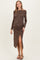 Brown Printed Ruched Side Slit Maternity Midi Dress