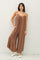 Brown Printed Sleeveless Wide Leg Jumpsuit