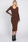 Brown Ribbed Fitted Button Long Sleeve Dress