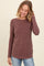 Brown Ribbed Scoop Neck Long Sleeve Top