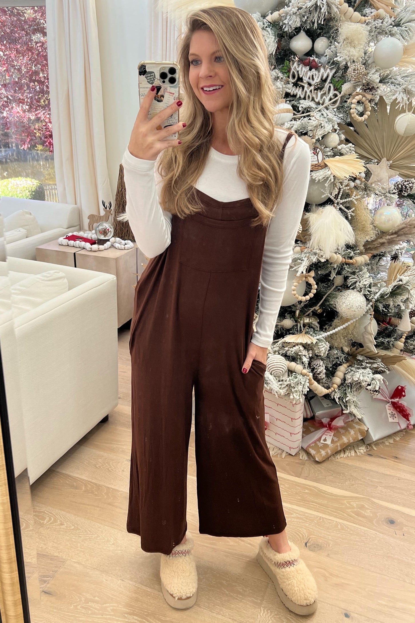 Brown Sleeveless Pocketed Wide Leg Maternity Jumpsuit