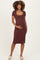 Brown Square Neck Side Slit Maternity Midi Dress