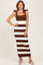 Elevate your wardrobe with this Brown Striped Knit Shoulder Tie Maxi Dress, a perfect blend of comfort and style. Crafted from soft, ribbed knit fabric, this dress features bold horizontal stripes in rich brown and creamy white. The flattering square neckline and adjustable tie shoulder straps add a feminine touch, while the maxi length enhances its elegant silhouette. Ideal for casual outings or sophisticated gatherings, pair it with your favorite heels or sandals for a chic, effortless look. This versatile dress is designed to keep you comfortable and stylish all day long.