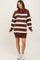 Brown Striped Knit Turtleneck Maternity Sweater Dress