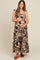 Brown Tropical Floral Shoulder Tie Tiered Maternity Midi Dress