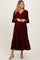 Brown Velvet Button Accent Smocked Sleeve Maternity Midi Dress