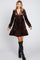 Details A velvet dress with a deep v-neckline, long cinched sleeves, and a gathered bottom tier. Content + Care