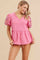 Bubble Gum Solid Baby Doll Top With Embroidery
