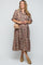 A floral print plus maternity maxi dress featuring front buttons, a tiered skirt, 3/4 sleeves and a collared neckline.