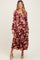 Burgundy Floral Smocked Long Sleeve Maternity Midi Dress