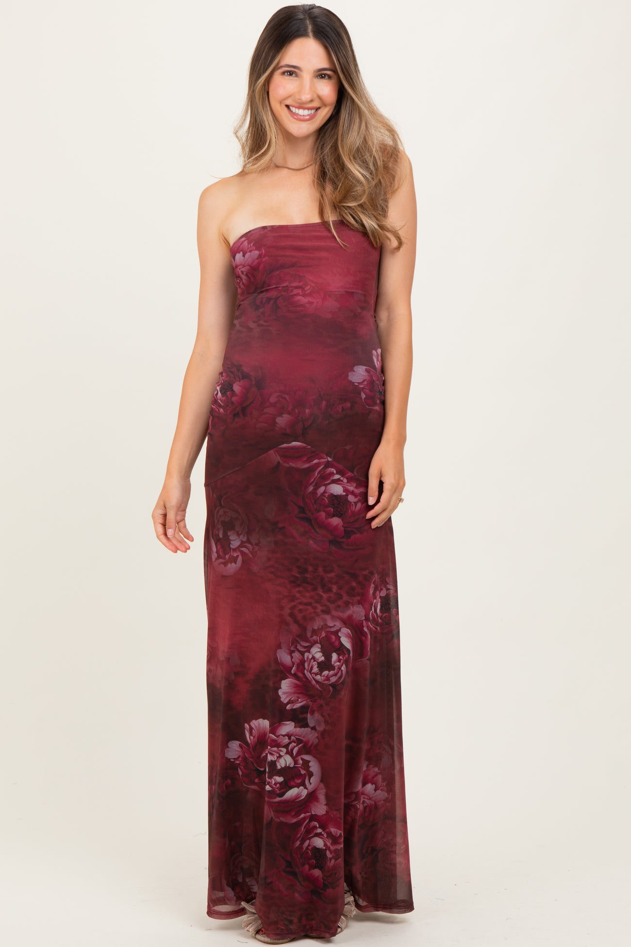 Embrace effortless elegance with our Burgundy Floral Strapless Maternity Maxi Dress. Crafted from soft, stretchy fabric, this dress gently hugs your growing bump while offering all-day comfort. The rich burgundy hue adorned with delicate floral patterns exudes timeless sophistication, perfect for baby showers, maternity photoshoots, or special occasions. Its strapless design highlights your shoulders beautifully, while the flowing maxi length adds a graceful touch. Whether dressing up or keeping it casual, this maternity maxi dress is a versatile wardrobe essential that celebrates your pregnancy in style. Available in multiple sizes for the perfect fit.