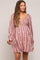 Burgundy Floral Stripe Smocked Long Sleeve Maternity Dress