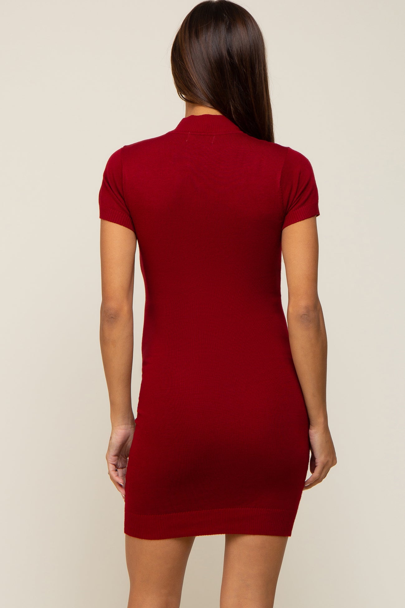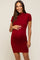 Burgundy Knit Mock Neck Fitted Maternity Dress