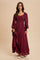 Elevate your style with our Burgundy Lace Inset Smocked Maxi Dress, a perfect blend of elegance and comfort. Featuring a flattering smocked bodice that hugs your shape, this dress boasts delicate lace insets along the flowy skirt and long balloon sleeves, adding a touch of romance to your look. The rich burgundy hue creates a warm, sophisticated vibe, ideal for both daytime events and evening occasions. Finished with subtle shirred cuffs and a graceful scoop neckline, this maxi dress pairs beautifully with flats or heels. Embrace timeless femininity and effortless charm with this versatile wardrobe staple.