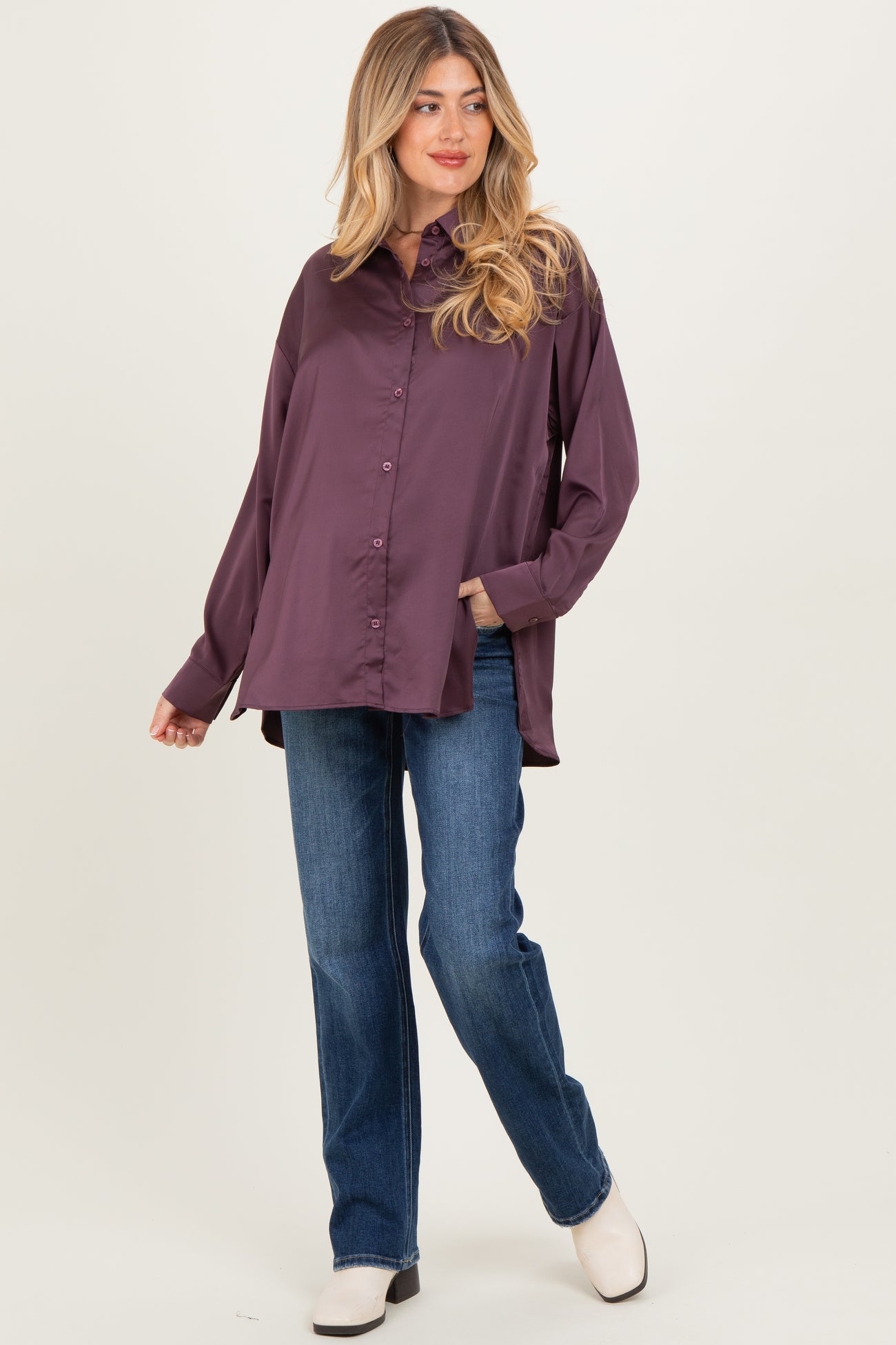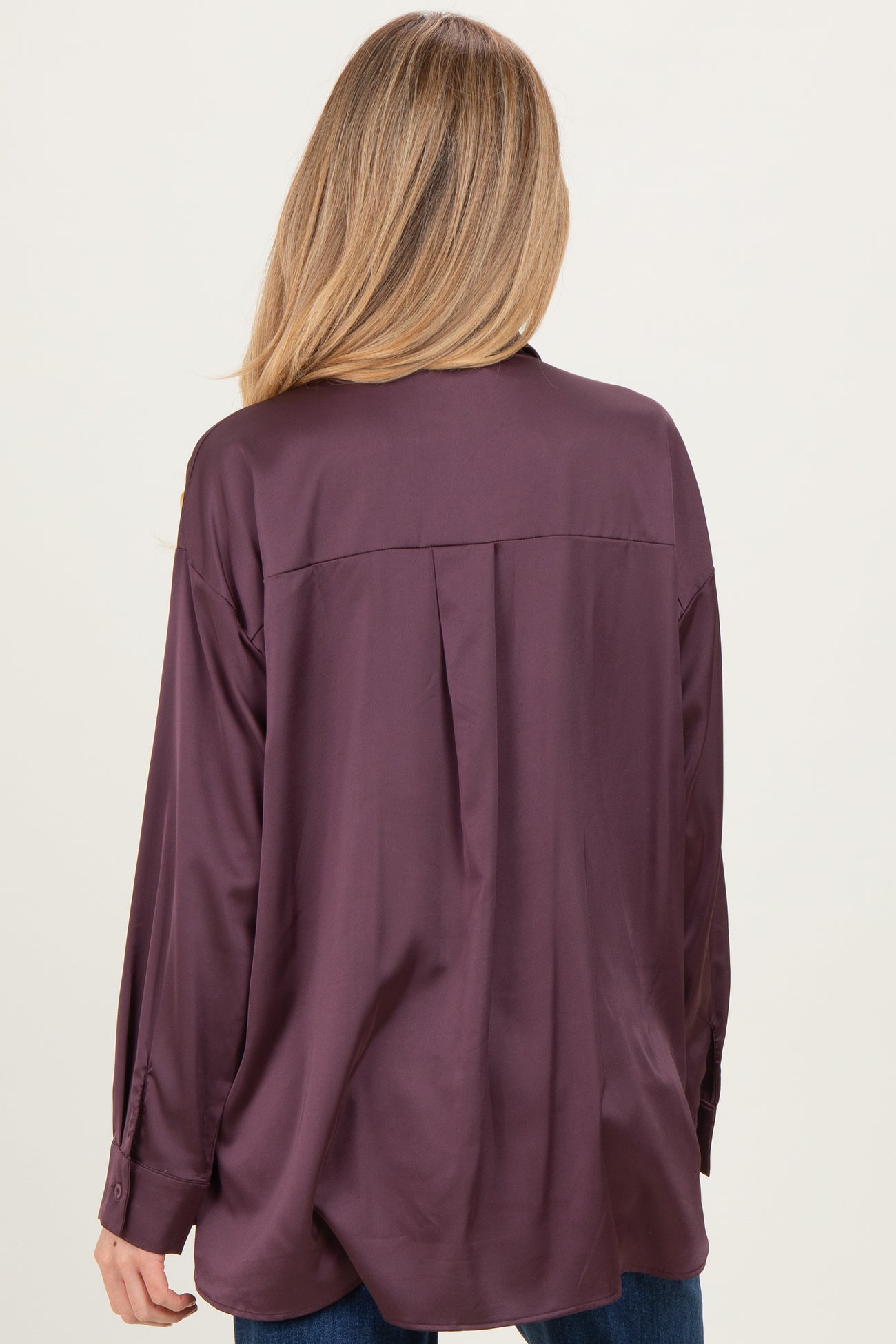 Burgundy Long Sleeve Oversized Satin Maternity Shirt