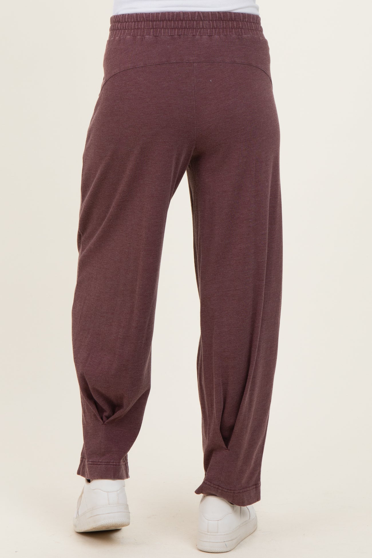 Burgundy Mineral Wash Pleated Maternity Lounge Pants