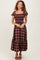 Burgundy Plaid Smocked Puff Sleeve Midi Dress