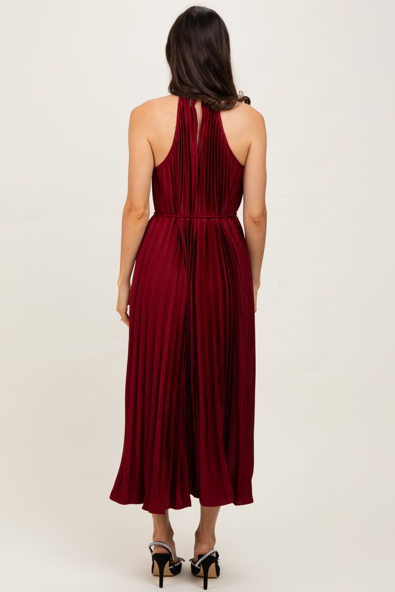 Burgundy Pleated Halter Dress
