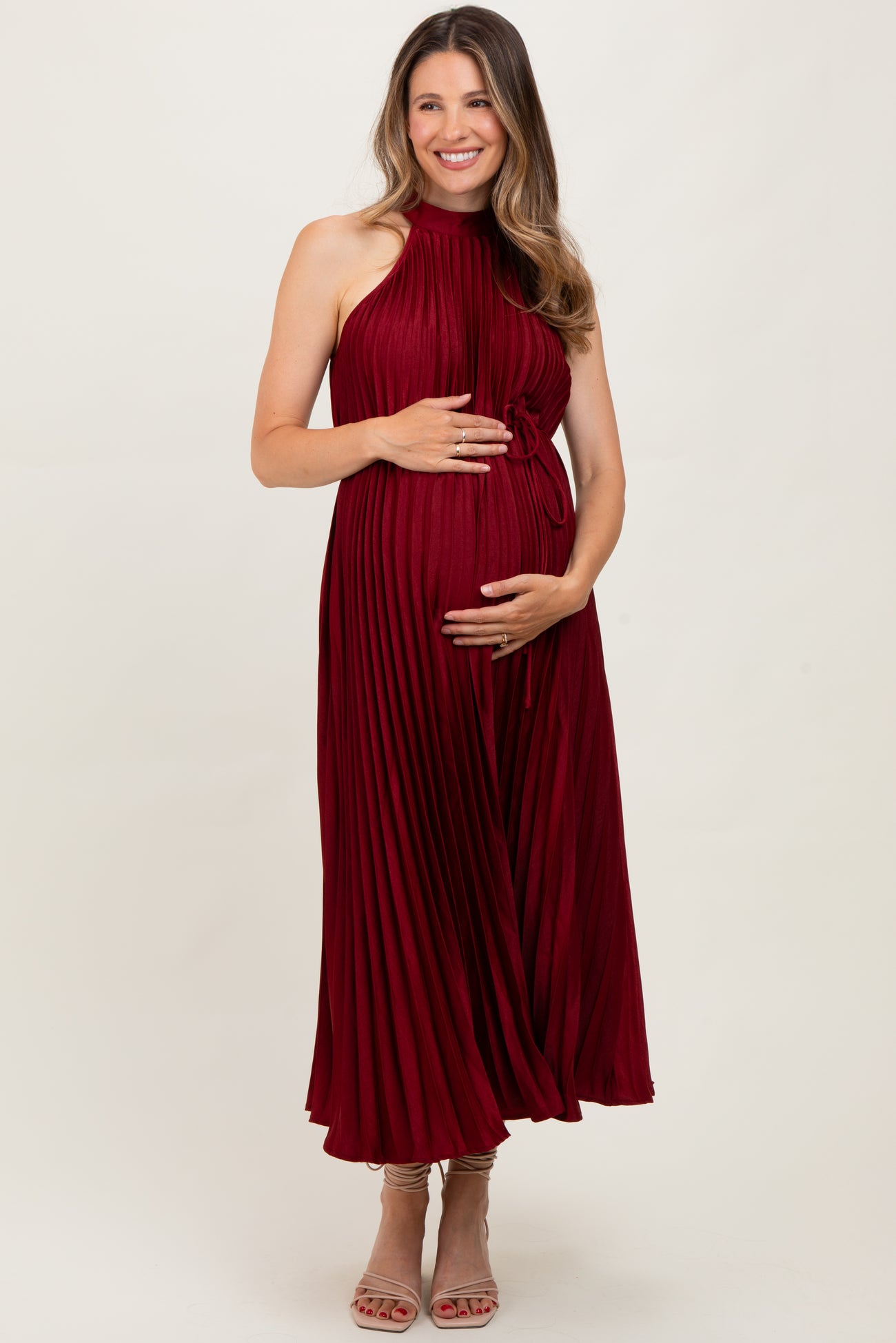 Turn heads at your next special event in our Pleated Maternity Halter Dress. This stunning dress blends elegance and comfort, with a flattering halter neckline and beautifully draped pleated skirt to accommodate your growing bump. The on-trend style is perfect for any season, making it perfect for baby showers, date nights, or holiday gatherings. Crafted from soft, breathable fabric, it ensures you feel as amazing as you look—before, during, and after pregnancy. Pair with heels and your favorite accessories for a sophisticated, effortless look worthy of every celebration.