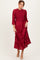 Burgundy Pleated Satin Smocked Bodice Midi Dress