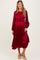 Elevate your maternity wardrobe with our Burgundy Pleated Satin Smocked Waist Maternity Midi Dress. Crafted from luxurious satin, this dress features elegant pleating that flows beautifully over your baby bump, offering comfort and style. The smocked waist with adjustable ties accentuates your silhouette while providing a flexible fit as your belly grows. Long bishop sleeves add a touch of sophistication, making this midi dress perfect for both special occasions and everyday wear. Pair it with your favorite heels or flats for a chic, timeless look throughout your pregnancy journey. Available in rich burgundy for a bold, classy statement.