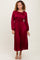 Burgundy Pleated Satin Smocked Waist Midi Dress