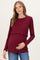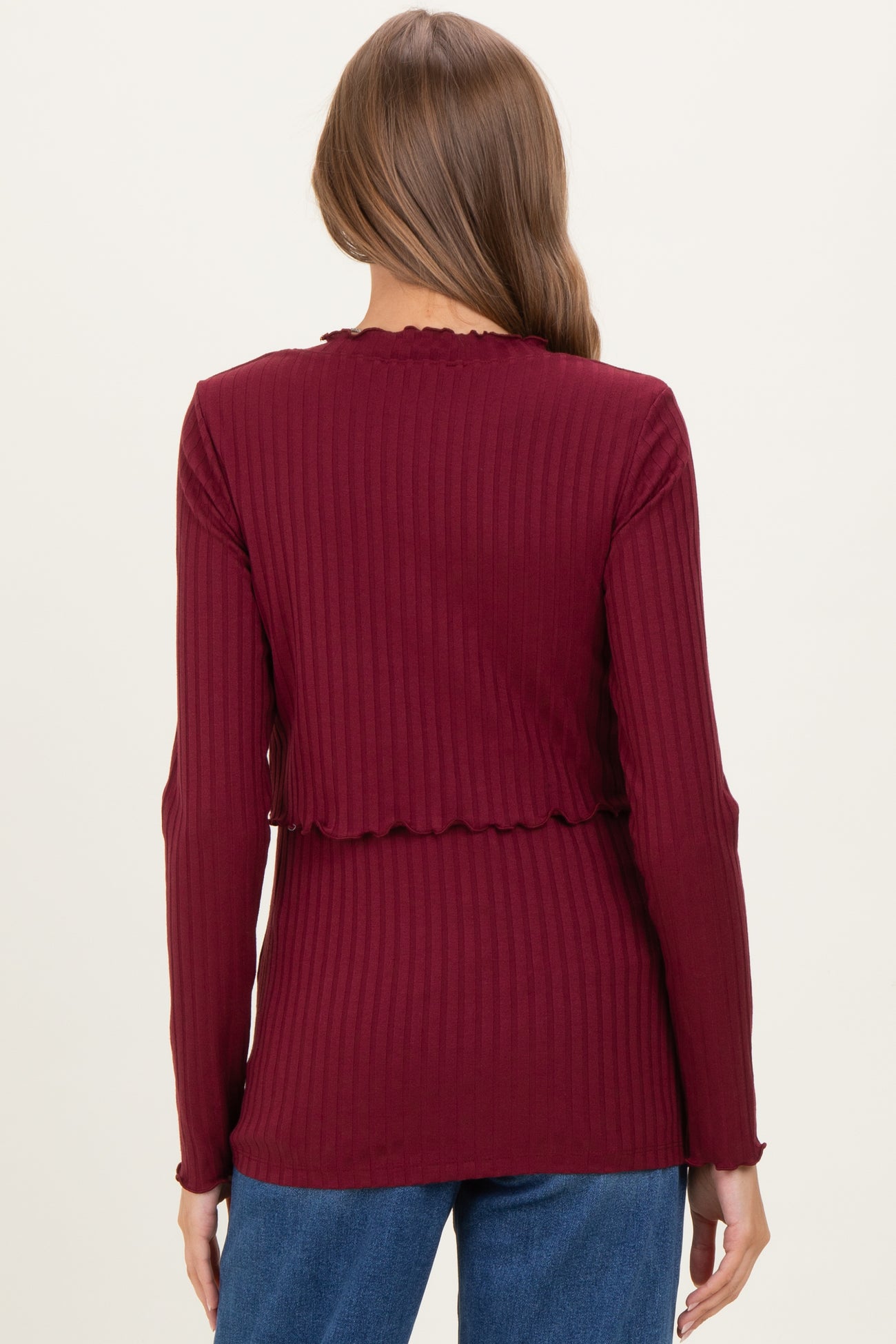 Burgundy Ribbed Ruffle Detail Maternity/Nursing Long Sleeve Top